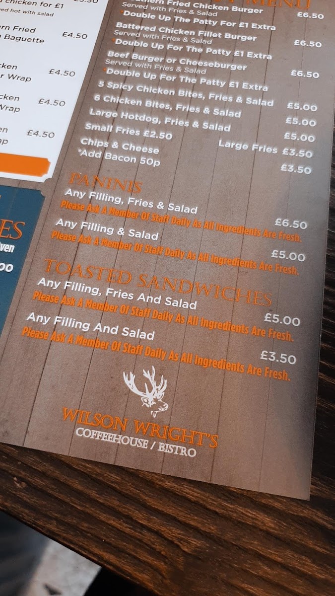 Welcome to Wilson Wright's Coffee & Food Takeaway, located at 76 Market St, Shirebrook. This charming café is a hidden gem, offering an impressive variety of hot drinks and delectable food options. The menu features comforting staples like Yorkshire Tea and rich Hot Chocolate, perfect for a cozy pick-me-up.